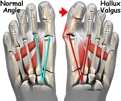 Hallux valgus is a condition that affects the joint at the base of the big toe. The condition is commonly called a bunion. The bunion actually refers to the bump that grows on the side of the first metatarsophalangeal (MTP) joint. In reality, the condition is much more complex than a simple bump on the side of the toe. Interestingly, this condition almost never occurs in cultures that do not wear shoes. Pointed shoes, such as high heels and cowboy boots, can contribute to the development of hallux valgus. Wide shoes, with plenty of room for the toes, lessen the chances of developing the deformity and help reduce the irritation on the bunion if you already have one.