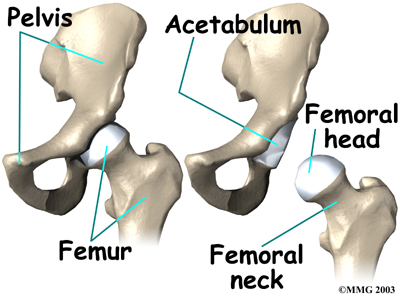 The hip socket is called the acetabulum and forms a deep cup that surrounds the ball of the upper thighbone, called the femoral head. The ball and socket is surrounded by a soft-tissue enclosure called the .