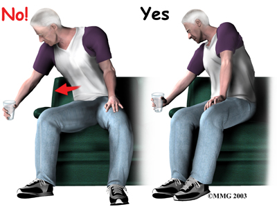 Your therapist will go over specific precautions with you in the preoperative visit and will drill you often to make sure you practice them at all times for six to 12 weeks after surgery.