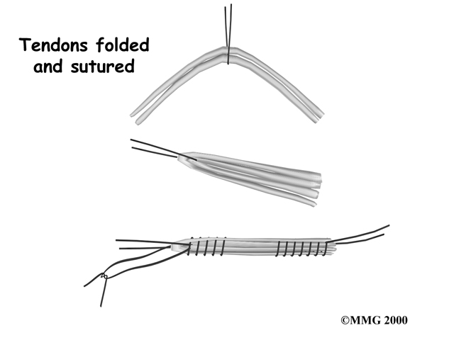 When arranged into , the hamstring graft has nearly the same strength as a patellar tendon graft.