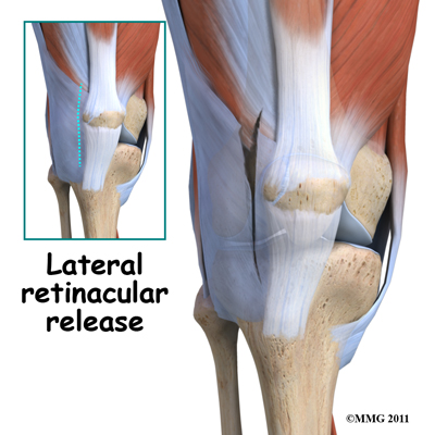 retinacular release. The vastus lateralis tendon (a part of the large quadriceps muscle