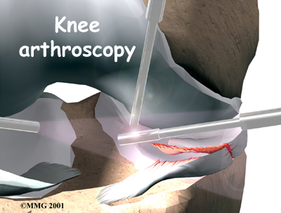 The procedure to take out the damaged portion of the meniscus is called a partial meniscectomy. The surgeon makes another small incision. This opening is needed to insert surgical instruments into the knee joint. The instruments are used to remove the torn portion of the meniscus, while the arthroscope is used to see what is happening.