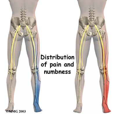 Pressure on the nerve can also cause sensations of where the nerve travels down the lower limbs. If this happens, a person's reflexes slow. The muscles controlled by the nerve weaken, and sensation in the skin where the nerve goes is impaired.