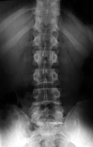 When more information is needed, your doctor may order (MRI). The MRI machine uses magnetic waves rather than X-rays to show the soft tissues of the body. It gives a clear picture of the discs and whether a herniation is present. Like the CT scan, this machine creates pictures that look like slices of the area your doctor is interested in. The test does not require special dye or a needle.