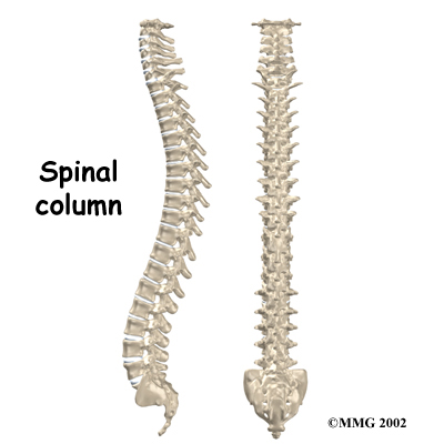 The human spine is made up of 24 spinal bones, called vertebrae. Vertebrae are stacked on top of one another to create the . The spinal column gives the body its form. It is the body's main upright support.