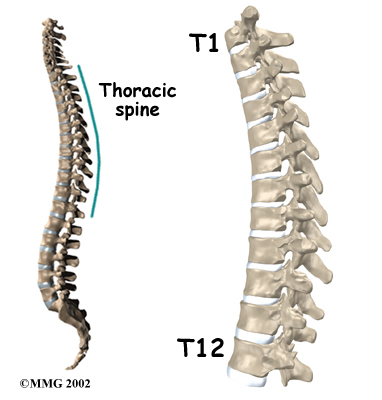 Compression fractures cause this section of bone to collapse. When the fracture is due to osteoporosis, it usually occurs in the lower part of the thoracic spine, near the bottom of the rib cage.