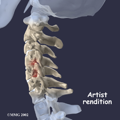 Surgery is rarely indicated in the treatment of these diseases, except where the damage caused by the disease has caused pressure on the spinal nerves or spinal cord. Total joint replacements may be needed for patients with severe damage to the hip or knee. Some patients elect to have surgery to correct kyphosis (forward curve or humpback of the upper spine) or to correct spine instability that has occurred from a fracture.