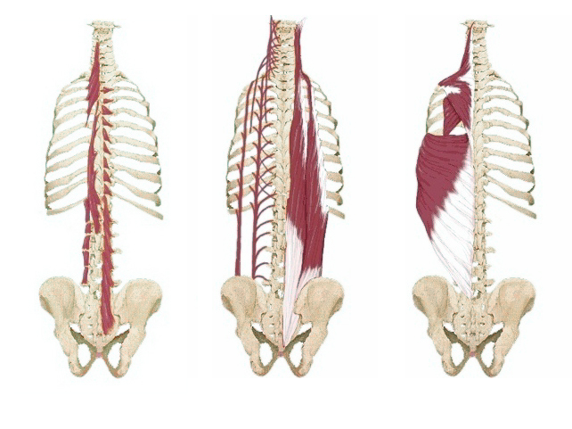 The of the thoracic spine are arranged in layers. Those closest to the skin's surface run from the back of the vertebrae to the shoulder blades. Others wrap around the rib cage and connect to the shoulders. Strap-shaped muscles called erector spinae make up the middle layer of muscles. These muscles run up and down over the lower ribs and thorax (the rib cage), and cross to the low back. The deepest layer of muscles attaches along the back of the spine bones, connecting the vertebrae. Muscles also connect from one rib to the next.