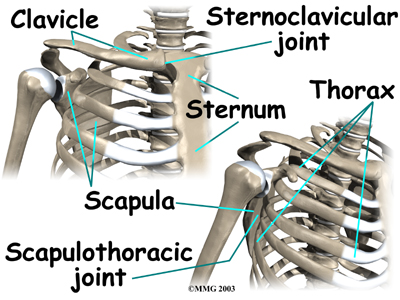 A false joint is formed where the shoulder blade glides against the thorax (the rib cage). This joint, called the , is important because it requires that the muscles surrounding the shoulder blade work together to keep the socket lined up during shoulder movements.