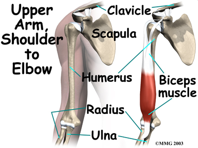 Your doctor may order X-rays. X-rays show the bones that form the shoulder joint and may show bony changes that have contributed to a ruptured biceps. For example, bone spurs (small projections of bone) may be seen on the X-ray. Spurs that form near the biceps tendon will often puncture the tendon as the arm is used with activity. X-rays can also show if there are other problems, such as a fracture. Plain X-rays do not show soft tissues like tendons and will not show a biceps rupture.