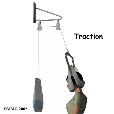 Treatments for cervical radiculopathy often include neck traction. Traction is a way to gently stretch the joints and muscles of the neck. It can be done using a machine with a , or the physical therapist can apply the traction pull by hand. Though neck traction is often done in our clinic, we may give you a traction device to use at home.