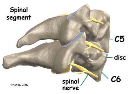 One way to understand the anatomy of the cervical spine to look at a . Each spinal segment includes two vertebrae separated by an intervertebral disc, the nerves that leave the spinal cord at that level, and the small facet joints (described later) that link each level of the spinal column.