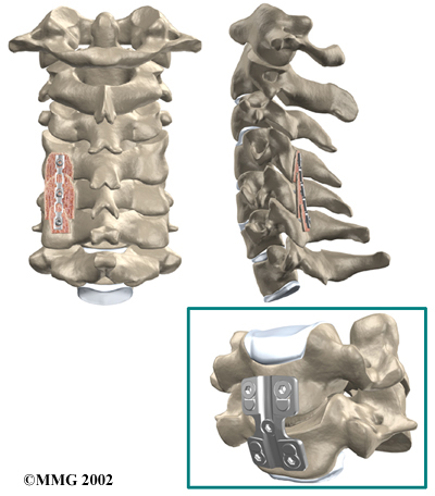 The bone graft needs time to heal in order for the fusion to succeed. This requires the neck to be held still. After cervical fusion surgery, patients usually have to wear a special neck brace for several months. These neck braces are often bulky and restrictive. Recently, surgeons have begun using metal plates and screws (often referred to as instrumentation) . The instrumentation is fastened to the vertebrae, where it holds the bones still while the graft heals.