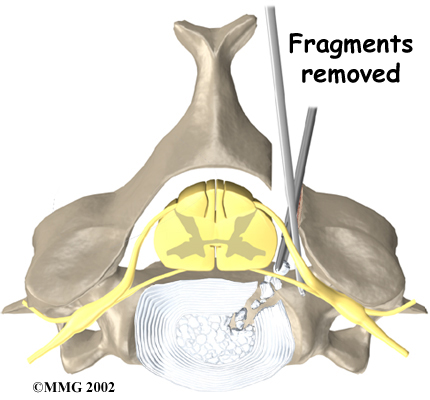 This method is used when the herniated disc has fragmented into small pieces near the spinal nerve.