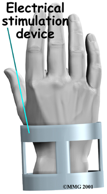 A fracture that doesn't heal within several months is considered a nonunion. If the injury is fairly recent, your doctor might recommend more time in the cast. He or she might also prescribe an . The electrical stimulator is a device that sends a small electrical current to your scaphoid bone. You wear it like a large bracelet for 10 to 12 hours a day. Electrical current has been shown to help the bones heal.