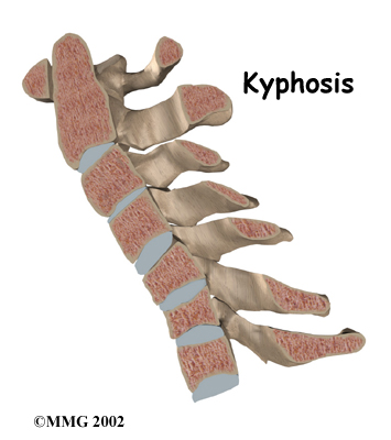 Posterior fusion is also used to line up and hold the neck bones when there's a deformity in the curve of the neck. Normally, the neck lines up with a slight inward curve from the base of the skull to the top of the thorax (the chest area). One type of deformity that changes the curve of the neck is called kyphosis. This happens when the inward curve starts to bow outward. Some people are born with an outward bow in their neck. Kyphosis can also occur when a severe injury compresses the vertebral body into the shape of a wedge. Neck surgeries that weaken the bony ring around the spinal canal can also lead to kyphosis. When kyphosis is a problem, a posterior fusion procedure may be used to correct the curve and to fuse the bones together once they're in the right position.