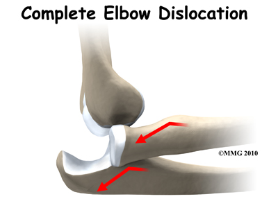 When the joint surfaces of an elbow are forced apart, the elbow is dislocated. The elbow is the second most commonly dislocated joint in adults (after shoulder dislocations). Elbow dislocations can be complete or partial. A partial dislocation is referred to as a subluxation. The amount of force needed to cause an elbow dislocation is enough to cause a bone fracture at the same time. These two injuries (fracture-dislocation) often occur together.
