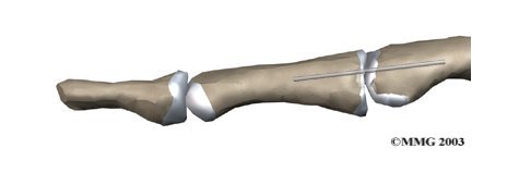 Soft Tissue Repair In cases where the balance cannot be restored to a tolerable limit with splinting or by simply pinning the PIP joint, surgery may be required to reconstruct and rebalance the extensor hood. There are numerous types of operations that have been designed to try and rebalance the extensor hood. None is completely successful. Surgery to repair the soft tissues that are contributing to a boutonniere deformity carries a relatively high risk of failure to achieve completely normal functioning of the extensor mechanism of the finger. All of the repair and reconstruction procedures are dependant on a well designed and rigorous exercise program following the surgery. A physical therapist or occupational therapist will work closely with you during your recovery. Fusion If past treatments, including surgery, do not stop inflammation or deformity in the joint, finger joint fusion may be recommended. Joint fusion is a procedure that binds the two joint surfaces of the finger together, keeping them from moving. Fusing the two joint surfaces together eases pain, makes the joint stable, and prevents additional joint deformity. Portions of this document copyright MMG, LLC. |