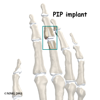 Swan neck deformity with a stiff PIP joint sometimes requires replacement of the PIP joint, called arthroplasty. The surgeon works from the back surface (dorsum) of the finger joint. Both surfaces of the PIP joint are removed to make room for the new implant. With the new joint in place, the surgeon balances the soft tissues around the joint to ensure that the new joint can easily bend and straighten. Finger Joint Fusion When RA produces a mallet deformity of the DIP joint and the PIP joint is supple, surgeons may consider fusing the DIP joint. Joint fusion is a procedure that binds the two joint surfaces of the finger together, keeping them from moving. Fusing the two joint surfaces together eases pain, makes the joint stable, and helps prevent additional joint deformity. If past treatments, including surgery, do not stop inflammation or deformity in the PIP joint, fusion of the PIP joint may be recommended. The PIP joint is usually fused in a bent position, between 25 and 45 degrees. Portions of this document copyright MMG, LLC. Our TreatmentWhat can be done for a swan neck deformity of the finger? Treatment for swan neck deformity can be nonsurgical or surgical. The approach used depends on whether the PIP joint is flexible or stiff. Non-surgical Rehabilitation Successful nonsurgical treatment is based on restoring balance in the structures of the hand and fingers. The PIP joint must be supple (not stiff). Aligning the PIP joint and preventing hyperextension should help restore DIP extension. If it doesn't, surgery may be needed.