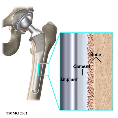 Both are still widely used. In some cases a combination of the two types is used in which the ball portion of the prosthesis is cemented into place, and the socket not cemented. The decision about whether to use a cemented or uncemented artificial hip is usually made by the surgeon based on your age and lifestyle, and the surgeon's experience.
