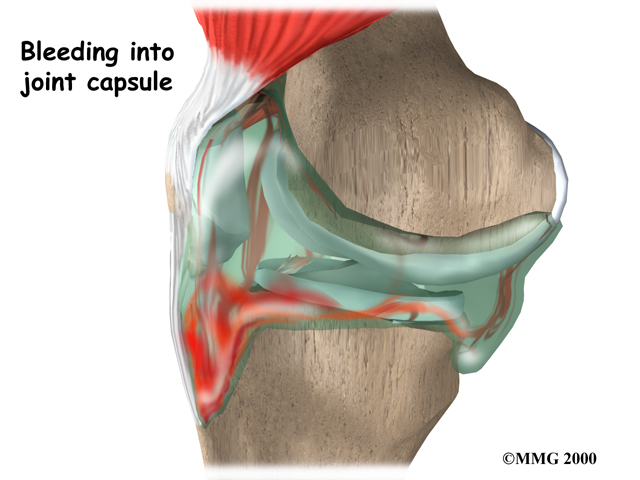 In the acute (sudden) injury, the swelling is a good indicator. A good rule of thumb that orthopedic surgeons use is that any tense swelling that occurs within two hours of a knee injury usually represents blood in the joint, or a . If the swelling occurs the next day, the fluid is probably from the inflammatory response.
