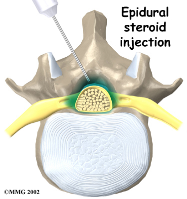 If symptoms continue to limit a person's ability to function normally, the doctor may suggest an (ESI). Steroids are powerful anti-inflammatories, meaning they help reduce pain and swelling. In an ESI, medication is injected into the space around the lumbar nerve roots. This area is called the epidural space. Some doctors inject only a steroid. Most doctors, however, combine a steroid with a long-lasting numbing medication. Generally, an ESI is given only when other treatments aren't working. But ESIs are not always successful in relieving pain. If they do work, they often only provide temporary relief.