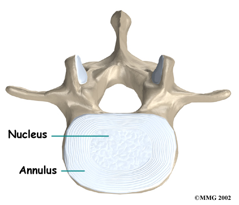 Healthy discs work like shock absorbers to cushion the spine. They protect the spine against the daily pull of gravity. They also protect it during strenuous activities that put strong force on the spine, such as jumping, running, and lifting.