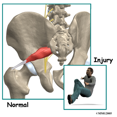 In some cases, the muscle may be injured due to a fall onto the buttock. Bleeding in and around the piriformis muscle forms a hematoma. A hematoma describes the blood that has pooled in that area. The piriformis muscle begins to swell and put pressure on the sciatic nerve. Soon the hematoma dissolves, but the muscle goes into spasm.