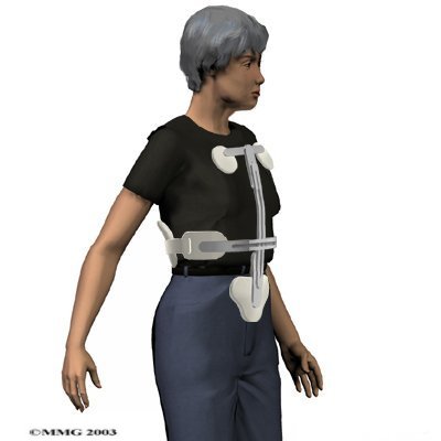 Most patients are fit with a special back brace, called an orthosis. This type of brace is molded to the patient's body. It limits spine movement in general, though the brace is usually fashioned to keep patients from bending forward. This protects the fractured vertebral body so it can heal and also assists with pain relief. Patients who wear a special brace will be advised to move about as normal but to limit strenuous activities, such as lifting and bending.
