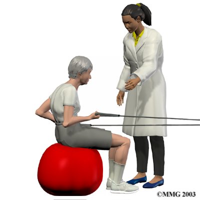 Your physical therapist will prescribe exercises for you to do in the clinic and also to be done as part of a home program. Exercises that improve the range of motion in your back, neck, shoulders as well as your hips may be prescribed. If your compression fracture was from osteoporosis, then the extension motion of your upper back (thoracic spine) will be of paramount importance. As mentioned above, wedge compression fractures of the thoracic spine from osteoporosis often lead to a flexed back posture. The risk of losing the ability to function in the upright extended position is high so maintaining this motion is crucial. Even the proper use of your shoulder joints will suffer if the spine loses extension therefore exercises may also be prescribed to maintain shoulder function. Neck range of motion can also be affected if the flexed posturing becomes severe thus range of motion exercises for the neck may also be required. Hip range of motion deficits will be addressed as normal hip range of motion allows the spine to move more freely and decreases the stress on the spinal joints. Patients with traumatic stress fractures don’t often present with the wedge shaped fractures and therefore the primary focus will be the recovery of all ranges of motion, not just thoracic extension.