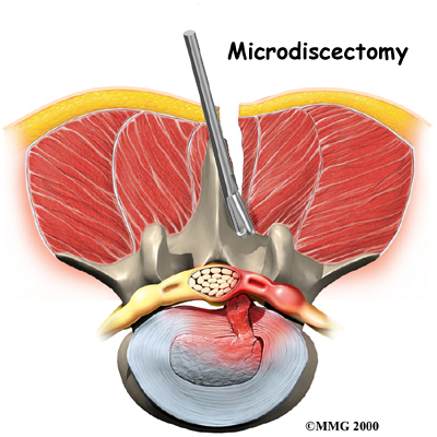 Microdiscectomy is becoming the standard surgery for lumbar disc herniation. Since the surgeon performs the operation with a surgical microscope, he or she needs to make only a very small incision in the low back. Categorized as minimally invasive surgery, this surgery is thought to be less taxing on patients. Advocates also believe that this type of surgery is easier to perform, prevents scarring around the nerves and joints, and helps patients recover more quickly.