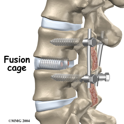Fusion surgery with cages requires bone grafting. The graft is commonly taken from the top rim of the pelvis (autograft). There is a risk of pain, infection, or weakness in the area where the graft is taken. These risks are avoided when a bone graft substitute is used in place of an autograft.