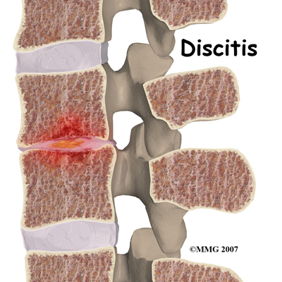 Discitis and vertebral osteomyelitis are rare in children. When a disc becomes inflamed and possibly infected, the condition is called discitis. If the vertebral bone becomes infected, the condition is called vertebral osteomyelitis.