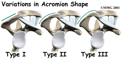 In some people, the space is too small because the acromion oddly sized. In these people, the acromion tilts too far down, reducing the space between it and the rotator cuff.