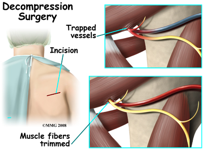 Bands of extra fibers in the quadrilateral space are usually what cause the compression of the axillary nerve or the small artery or vein. These bands of fibers are clipped or removed during surgery. This type of surgery is called decompression. It is quite effective.
