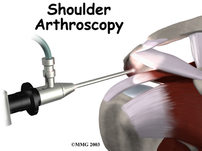There are many small instruments that have been specially designed to perform surgery in the joint. Some of these instruments are used to remove torn and degenerative tissue. Some of these instruments nibble away bits of tissue and then vacuum them up from out of the joint. Others are designed to burr away bone tissue and vacuum it out of the joint. These instruments are used to remove any bone spurs that are rubbing on the tendons of the shoulder and smooth the under surface of the acromion and AC joint.