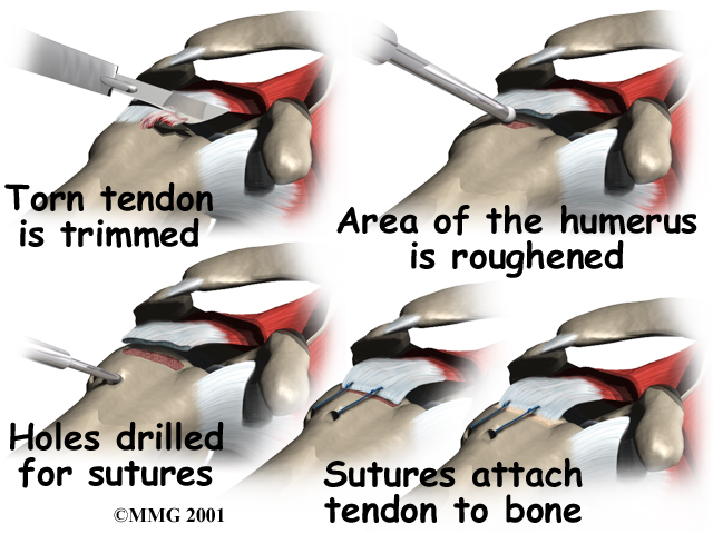 SurgeryA complete rotator cuff tear will not heal. Complete ruptures usually require surgery if your goal is to return your shoulder to optimal function. The exception is in elderly patients or patients who have other diseases that increase the risks of surgery. There is some evidence that repairing the rotator cuff within three months of the injury results in a better outcome. You will need to work with your surgeon to determine when is the best time to do the surgery. Certain types of partial rotator cuff tears may not require surgical repair. If you have a partial tear, your surgeon will most likely want to further evaluate the situation and determine how much the tendon is torn and where the tendon is damaged. This information will be used to decide whether surgery should be recommended or whether you may want to consider non-surgical care for the partial tear of the tendon. Today, the MRI scan is the most common test used to evaluate the shoulder and determine whether surgery is necessary. Your surgeon will be looking for details of your rotator cuff tear and checking for other problems. As mentioned earlier, a tear usually doesn't occur unless the rotator cuff is already weakened by some other problem. Other potential problems include: Acromioclavicular (AC) Joint Osteoarthritis