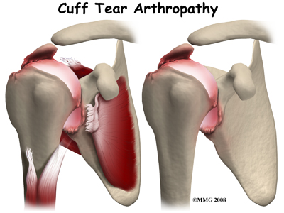 When cuff tear arthropathy of the shoulder requires replacement of the painful shoulder with an artificial shoulder joint, a reverse shoulder replacement may be recommended. You and your surgeon should make the decision to proceed with surgery together. You need to understand as much about the procedure as possible. If you have concerns or questions, you should talk to your surgeon.