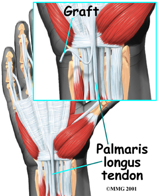 Again, metal pins are used to hold the bones stationary while the tendon graft heals. The pins are removed six to eight weeks after the surgery.