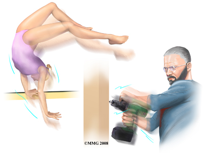 High-demand athletes such as tennis players or gymnasts (including children and teens) are at greatest risk for TFCC injuries. TFCC injuries in children and adolescents occur more often after an ulnar styloid fracture that doesn't heal. Power drill injuries also often cause TFCC rupture when the drill binds and the wrist rotates instead of the drill bit. TFCC tears can also occur with degenerative changes. Repetitive pronation (palm down position) and gripping with load or force through the wrist are risk factors for tissue degeneration. Degenerative changes in the TFCC structure also increase in frequency and severity as we get older; thinning soft tissue structures that occur with age can result in a TFCC tear with minor force or minimal trauma.